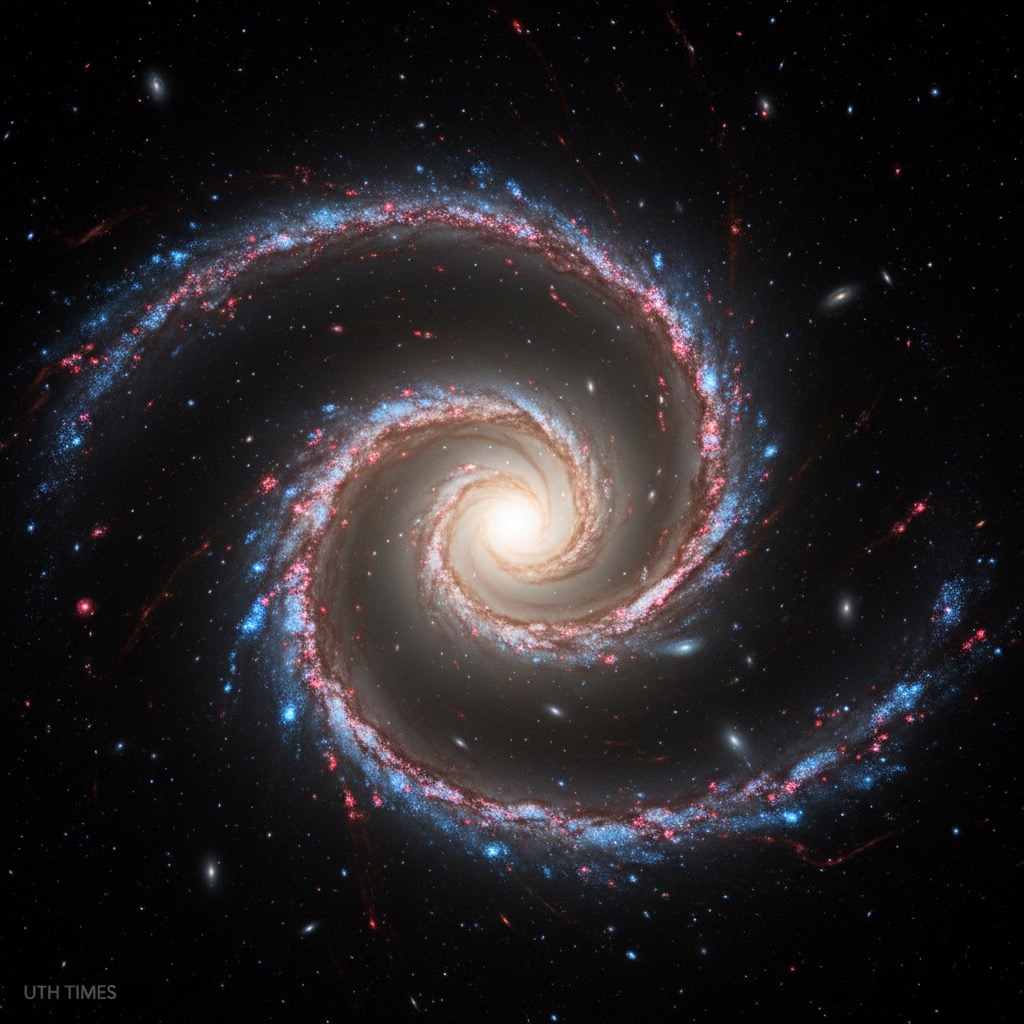 - 🌟 Perfectly Sculpted Spiral Arms — unusually symmetric, indicating a stable, mature galactic structure.