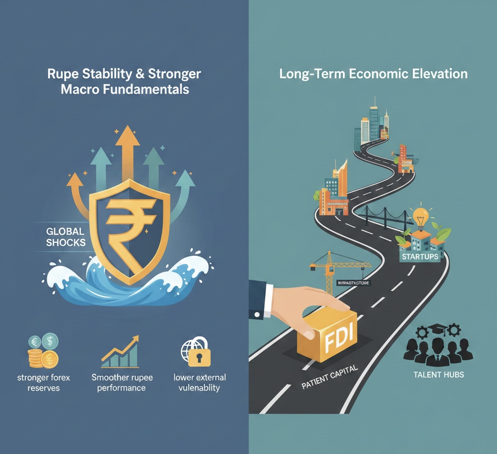 💸 3. Rupee Stability & Stronger Macro Fundamentals