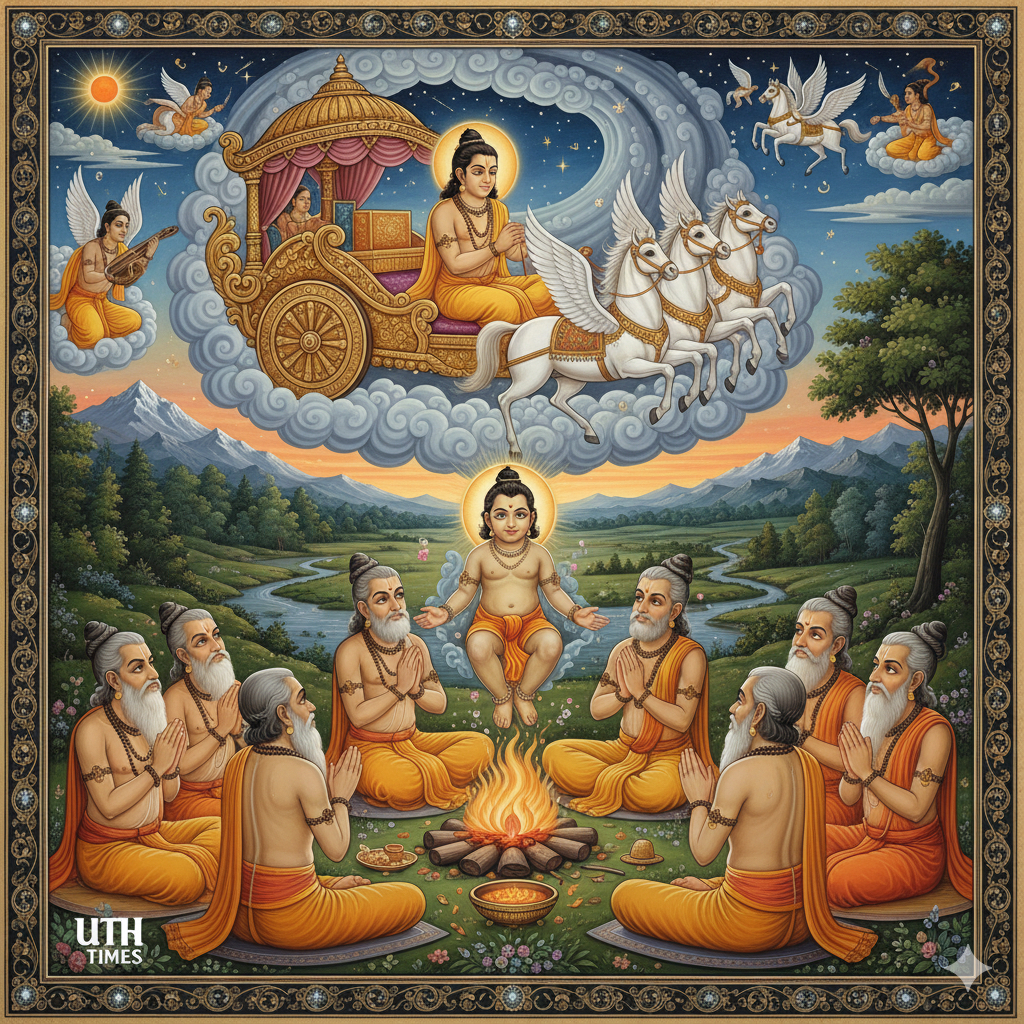 That miraculous child was King Dasharatha, originally named Manu. His chariot could move in all ten directions, earning him the name “Dasharatha” — one who commands the heavens, earth, and beyond.