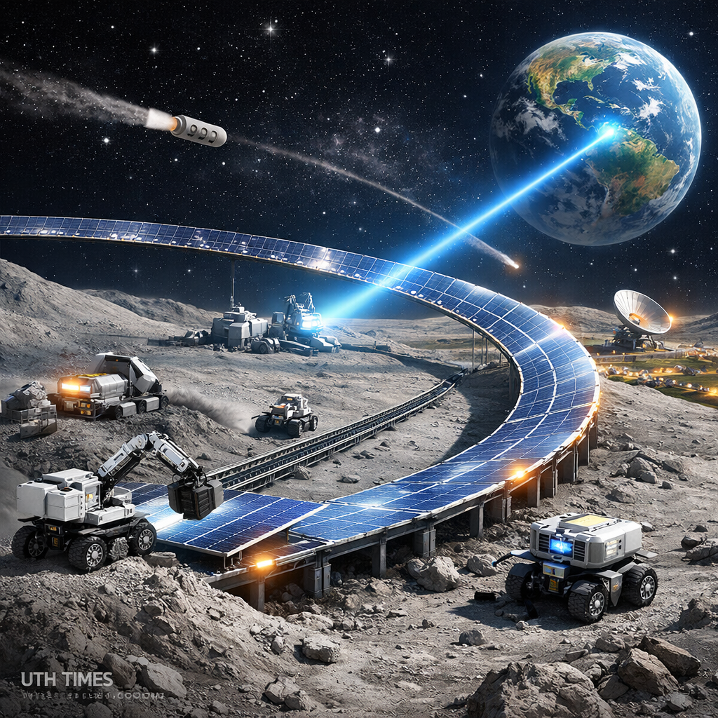 🔹 Autonomous construction robots would build solar panels using materials extracted directly from lunar soil.