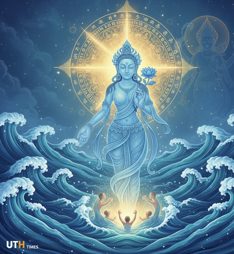🌀 She rescues devotees from the turbulent ocean of worldly suffering, guiding them to inner peace.