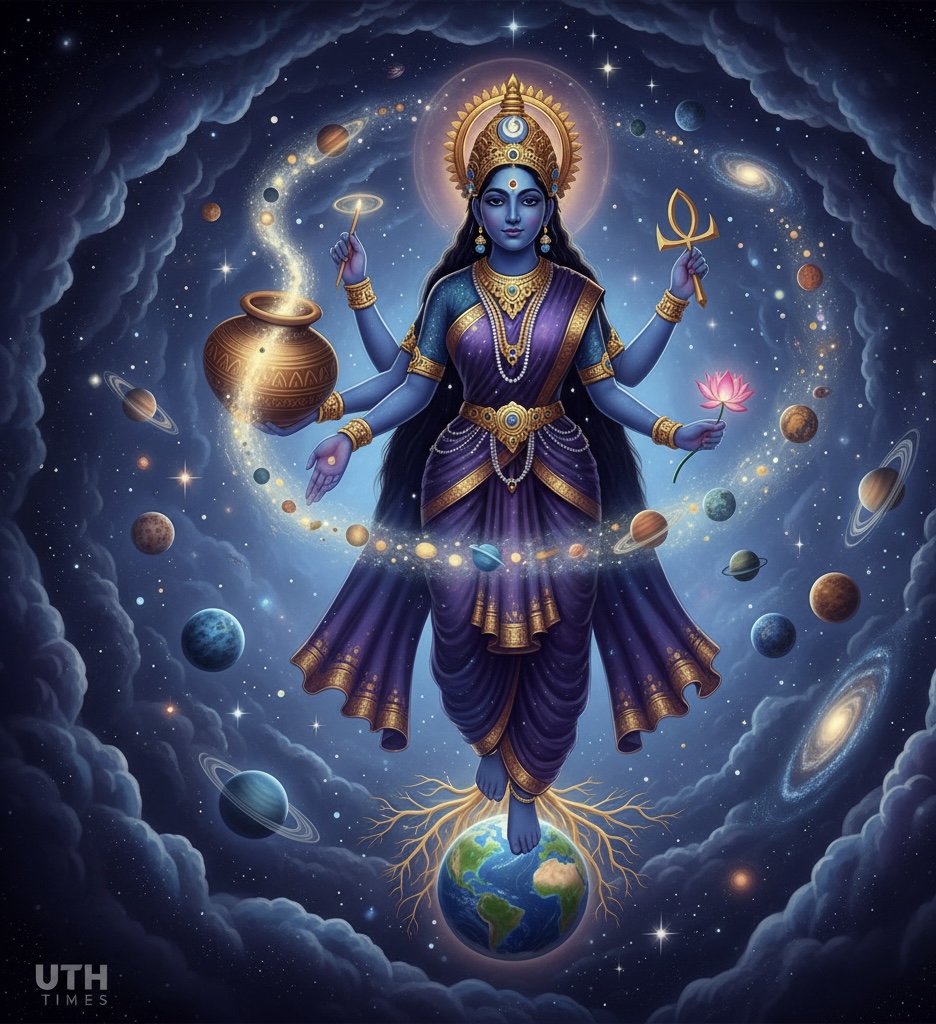 Bhuvaneshwari, the “Queen of the Universe,” is the embodiment of space and expansion.