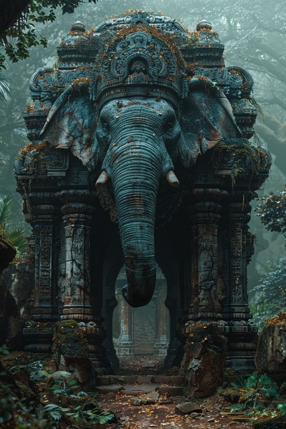 🪨 The Shivling, symbol of Lord Shiva, denotes the cosmic pillar of creation and destruction. The act of the elephant bowing mirrors devotional traditions in India, suggesting ritual practices may have been performed here centuries ago.