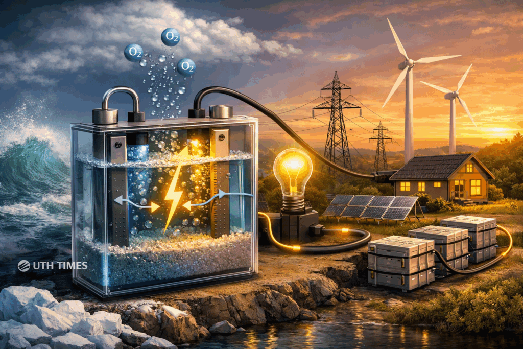 The battery operates through a controlled electrochemical reaction between salt and oxygen. When the system discharges, chemical energy is converted into electricity with exceptional stability.