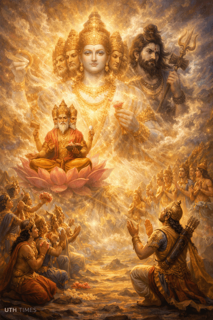 All deities—fearless, immortal beings—stood worshipping Krishna, overwhelmed by the realization that they too were manifestations of something far greater.